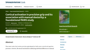 2026年2月26日にfNIRSを用いた成人における精緻な手指運動に伴う脳活動を検討した論文がExperimental Brain Research誌に掲載されました!鳥山隼平さん(M2)の研究成果です。